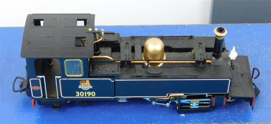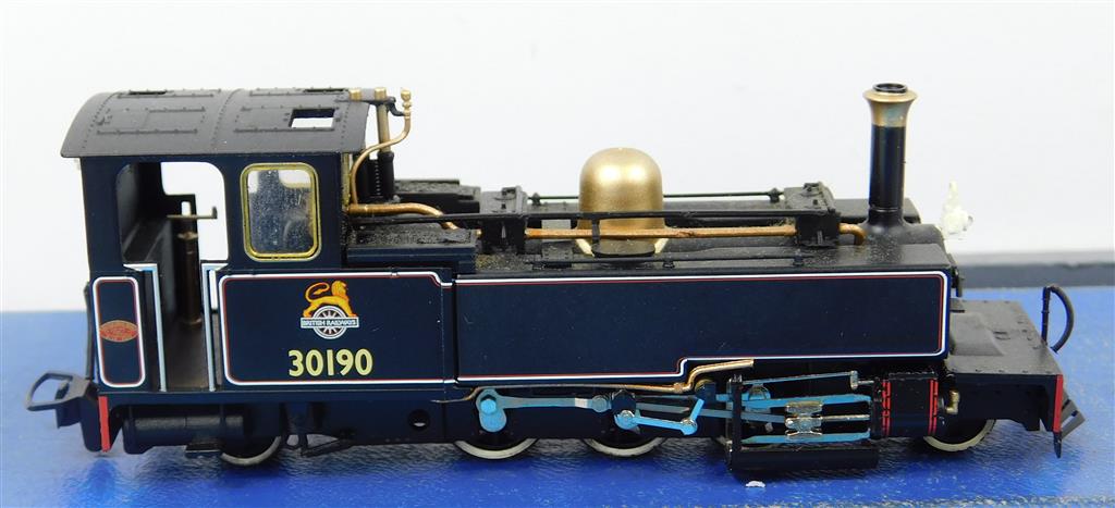 A Heljan Lynton & Barnstaple Railway steam loco "Lyd" in BR black livery number 30190, runs but would benefit from an electrical clean, suitable for 15" radius minimum, detached slide bar cover one side, needs a clean, in good condition, no original box (9962)