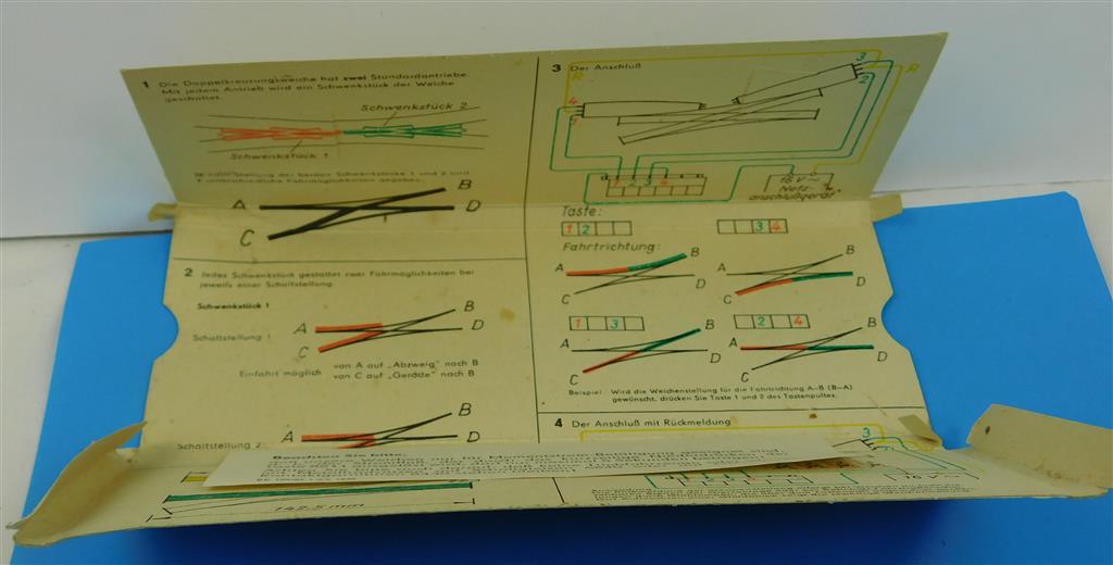 A BTTB TT 6860 Double Slip DKW with two solenoids, both work but the mechanism needs a clean and possibly lubrication to work properly, slightly rusty track, supplied in the original box.