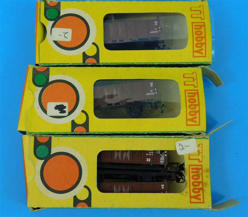 4 incomplete BTTB TT open wagons, missing some parts, supplied in 3 original boxes