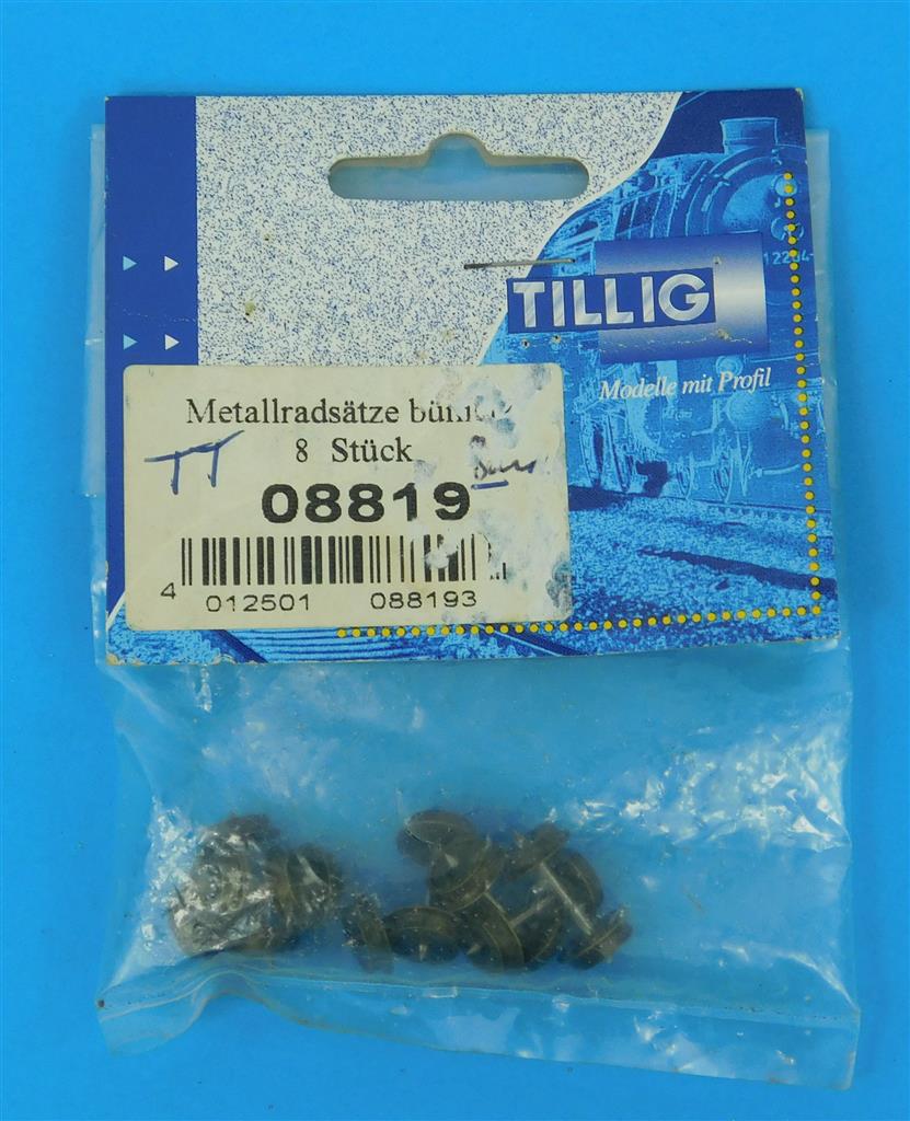 A pack of Tillig 08819 8 metal wagon wheels, in very good condition, supplied in the original packaging