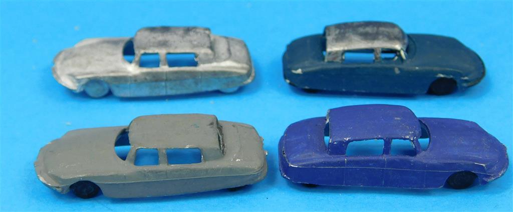 4 White Metal TT 1:120 scale Citroen DS21 cars, unglazed, some unpainted, make unknown, no original box