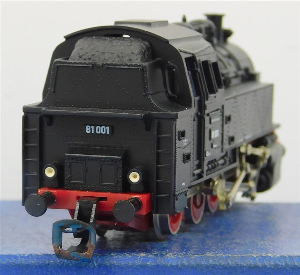 A BTTB TT East German DR class 81 steam loco, no sign of life even when the body is removed and power is applied to the motor brushes, flaking paint on the cylinders otherwise in good cosmetic condition, supplied in the (unlabelled) original box, sold as a project