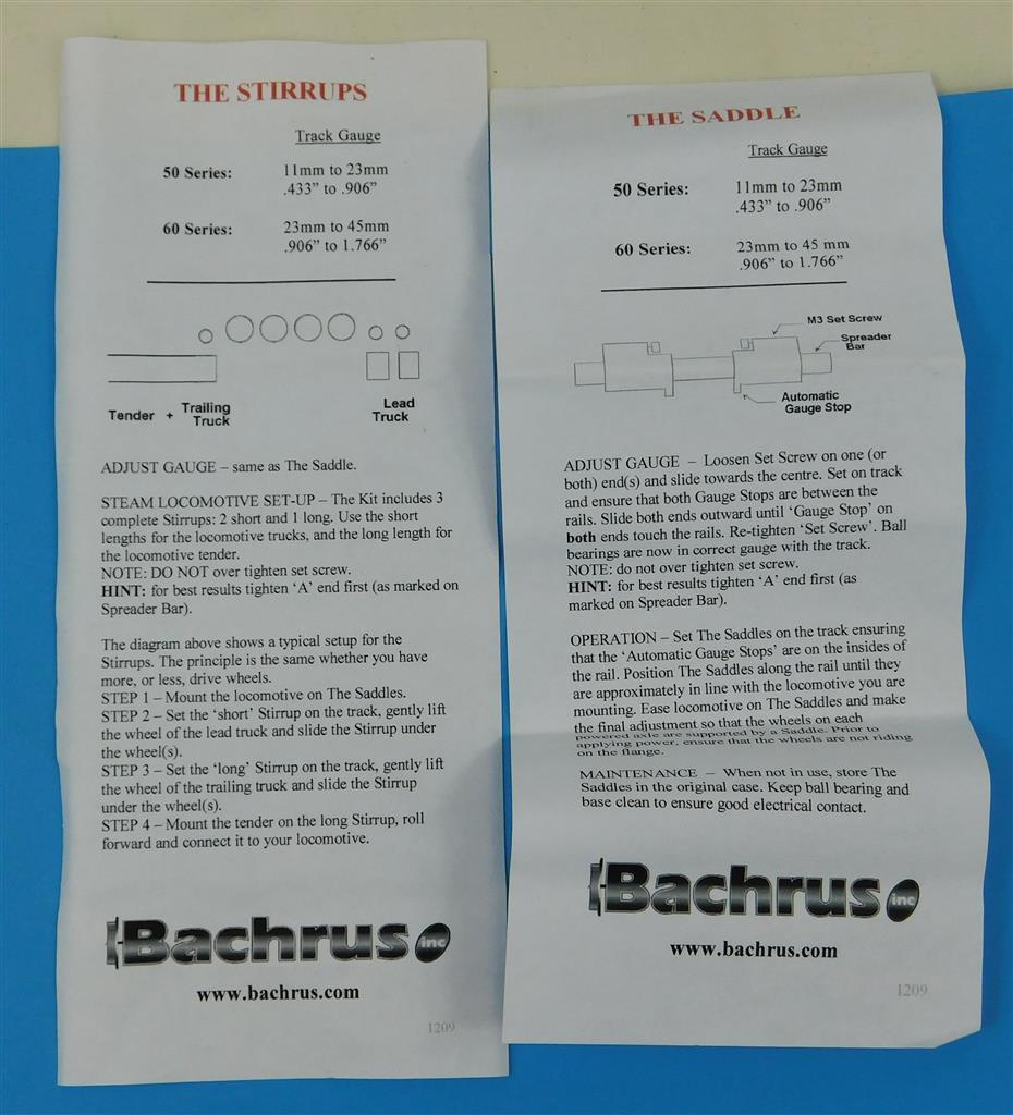 A Bachrus 50SA-4/52ST H0/OO scale loco running stand base and 4 runners, in very good condition, supplied in the original boxes with terse instructions