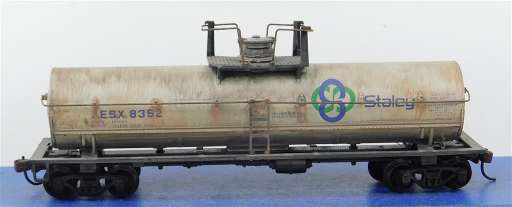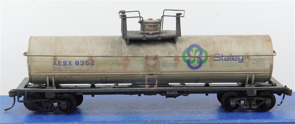 A Staley tank car with Kadee type couplings missing springs, in fair condition, no original box