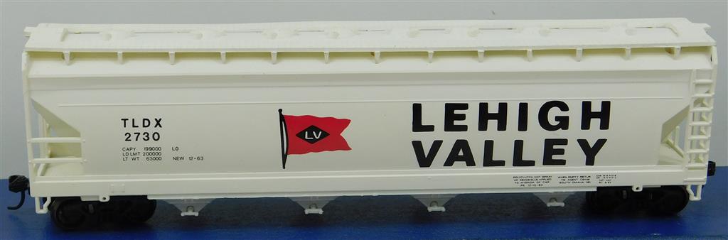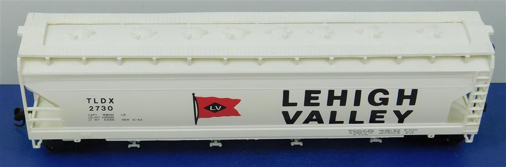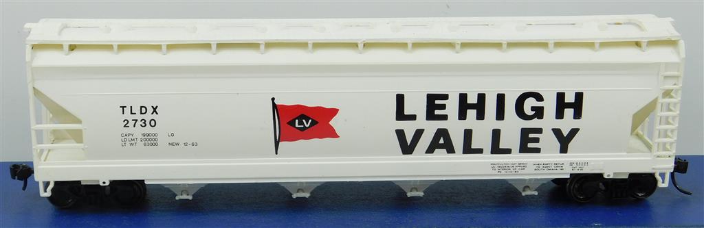 A Lehigh Valley covered hopper car with Kadee type couplings, draft box springs need adjustment, in good used condition, no original box