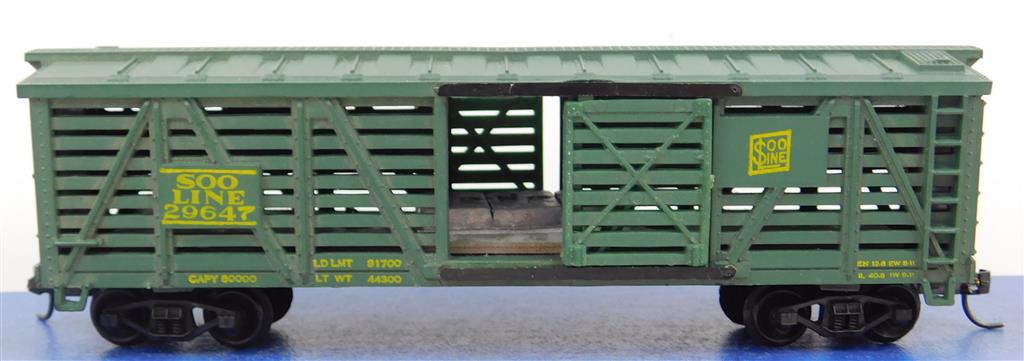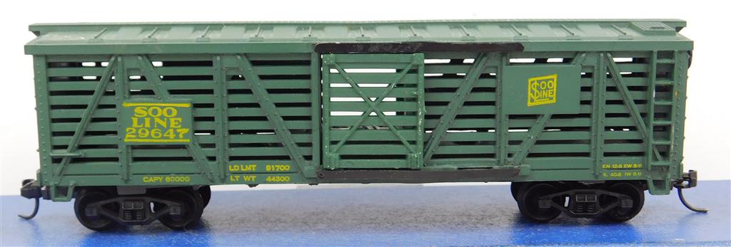 A Life-Like H0 scale Soo Line stock car 29647 with Kadee couplings glued to the bogies, missing one coupling spring otherwise in good condition, no original box