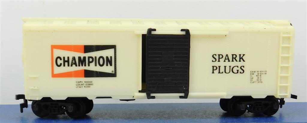 American H0: H0 scale Champion Spark Plugs box car with horn-hook couplings