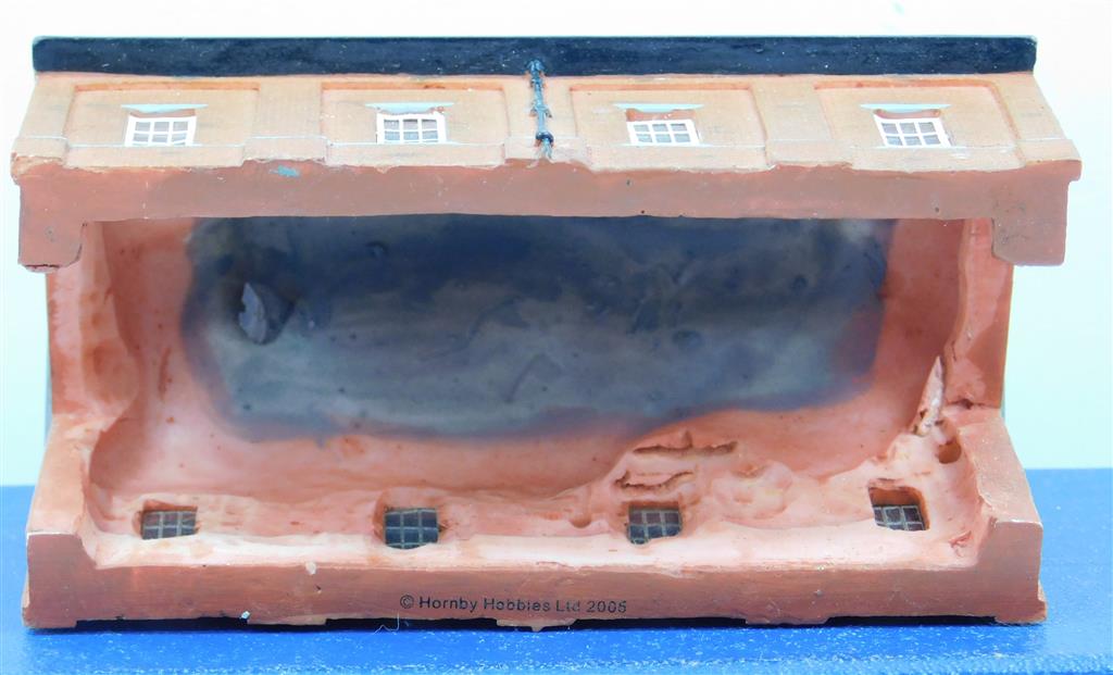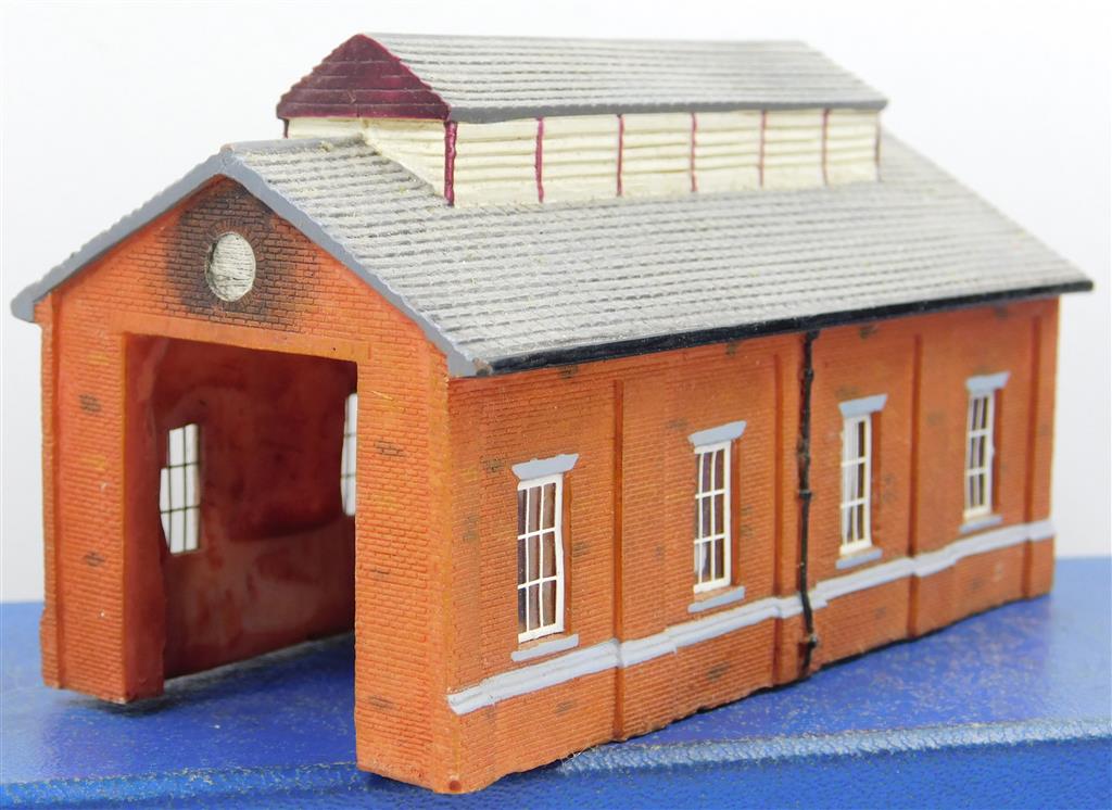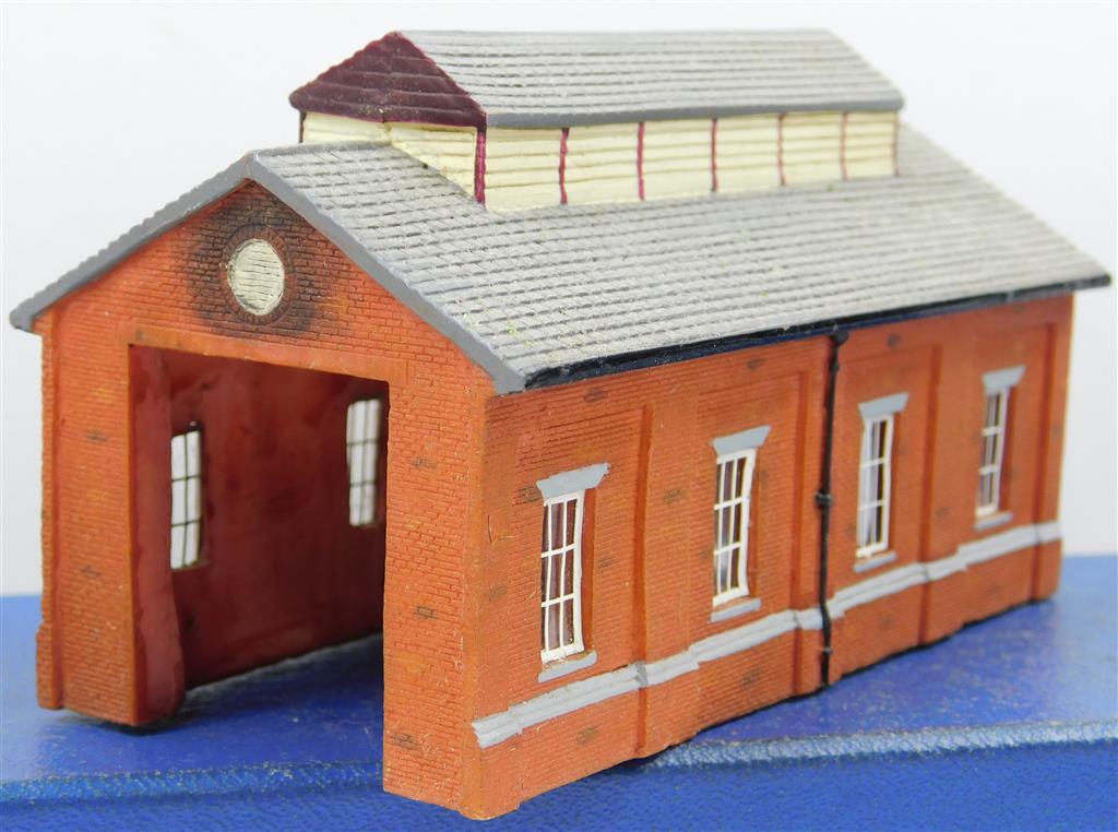 A Hornby N gauge Lyddle End small brick single road loco shed, in good used condition, no original box