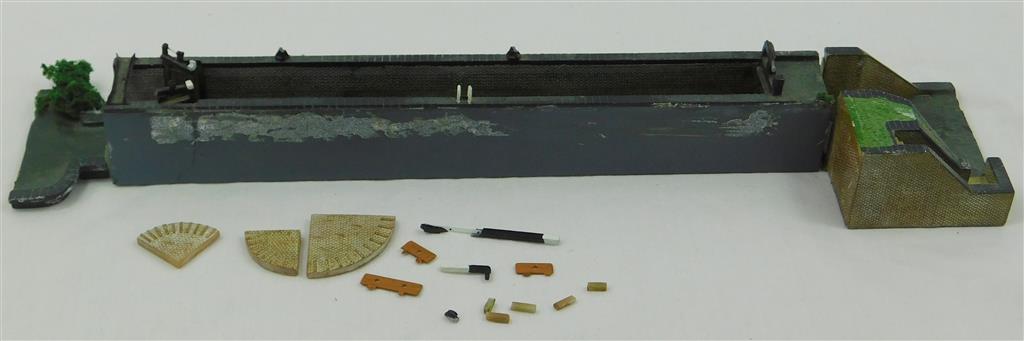A Hornby N gauge Lyddle End canal lock, 3 parts plus some small parts that need attention, as removed from a layout, in fair used condition, no original box
