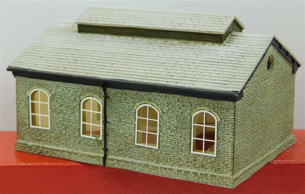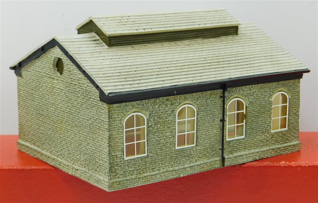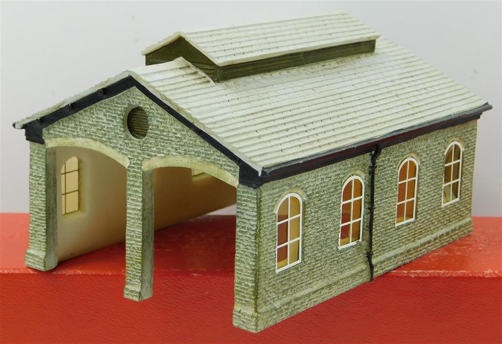 A Hornby N gauge Lyddle End stone two road loco shed, in good used condition, no original box