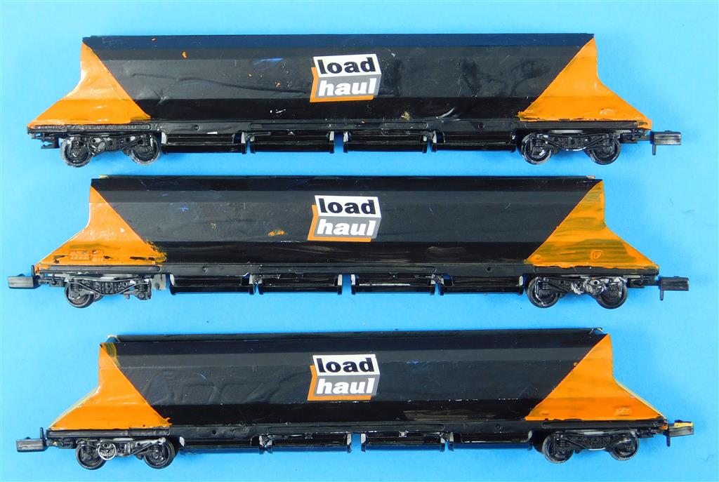 British N gauge: 3 N gauge kit built load haul hopper wagons