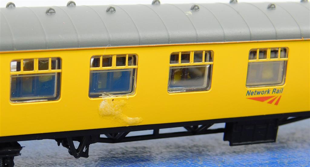British N gauge: Graham Farish N gauge NetworkRail Mk1 brake coach DB975280, glue spot on one side