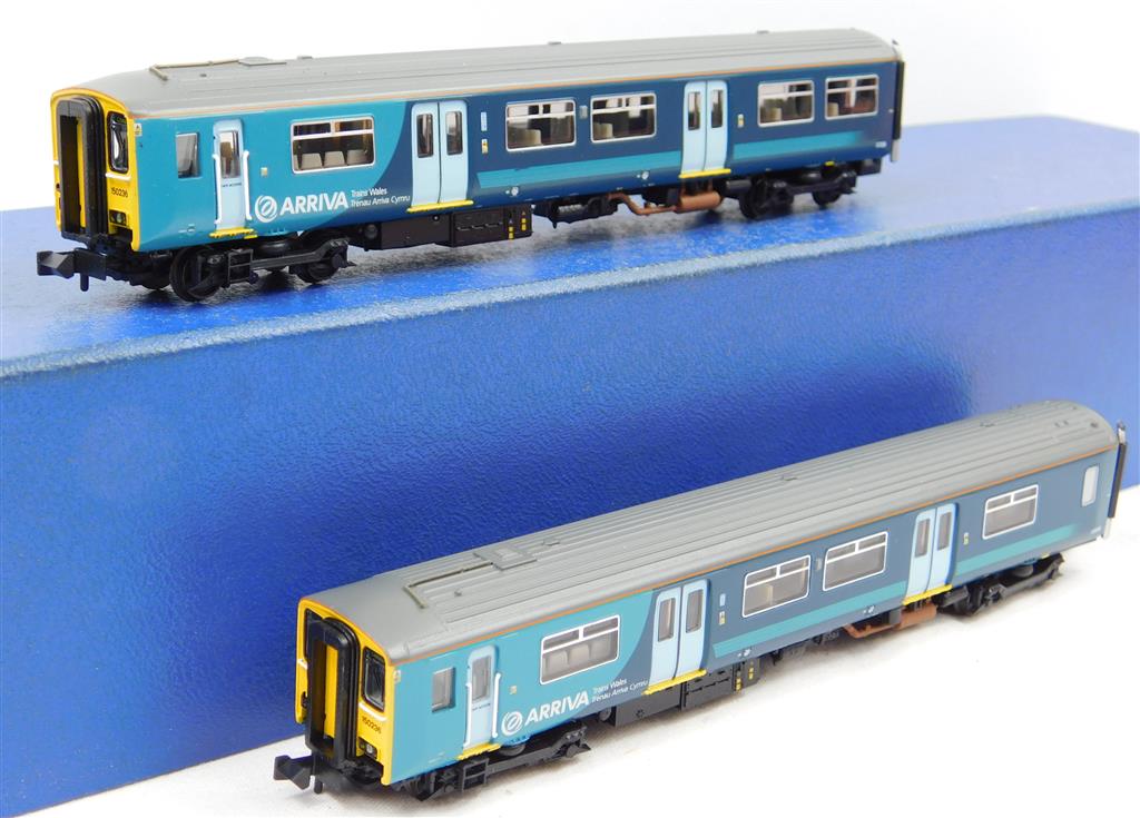 British N gauge: Graham Farish by Bachmann N gauge Arriva Trains Wales class 150 2 car DMU number 150236, good runner