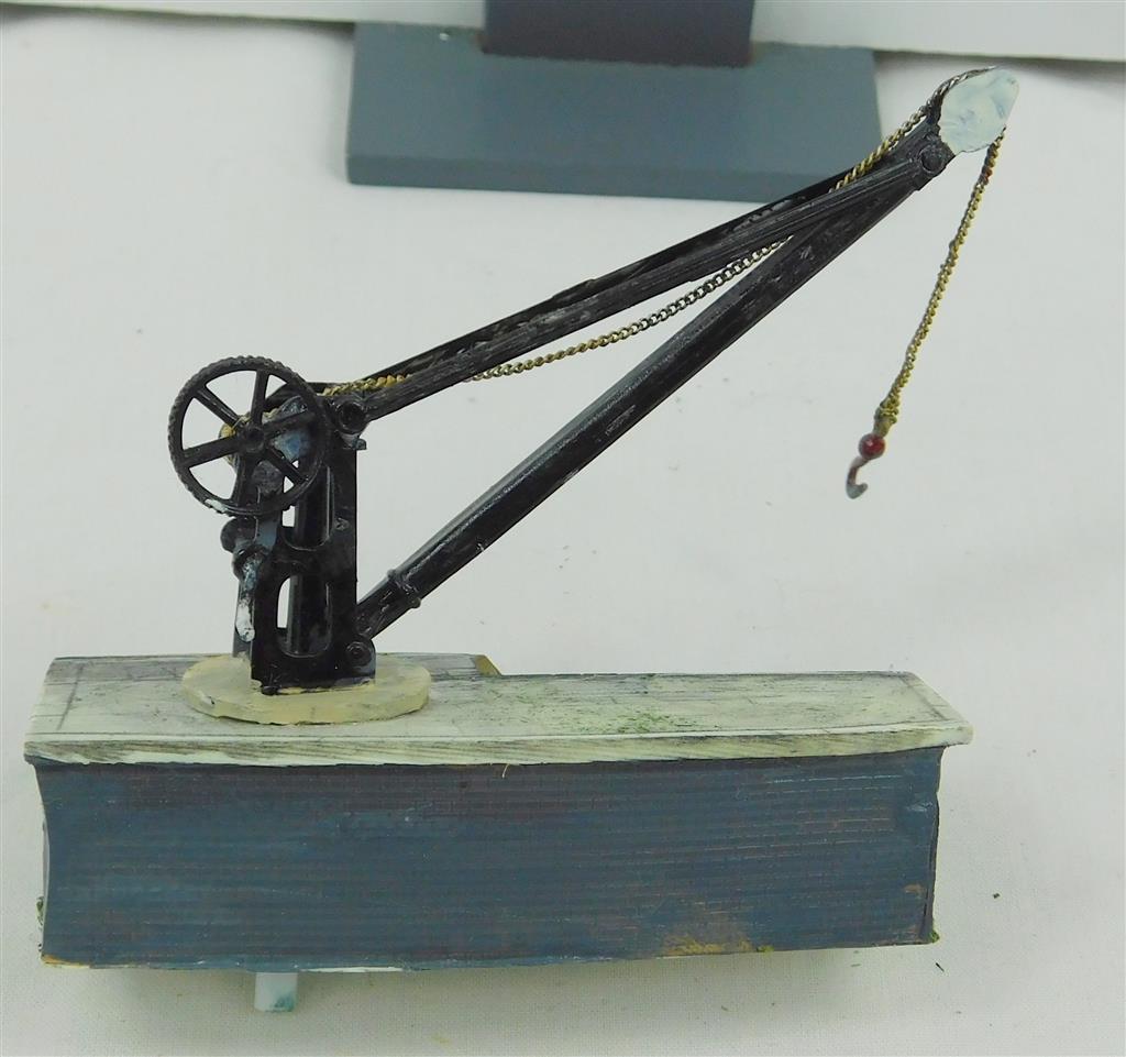 00 Accessories: Painted 00 gauge white metal platform mounted crane, some fettling required