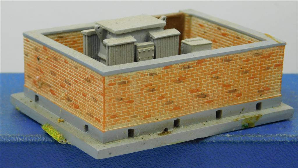 A Hornby Skaledale walled small substation, as removed from a layout, needs a good clean