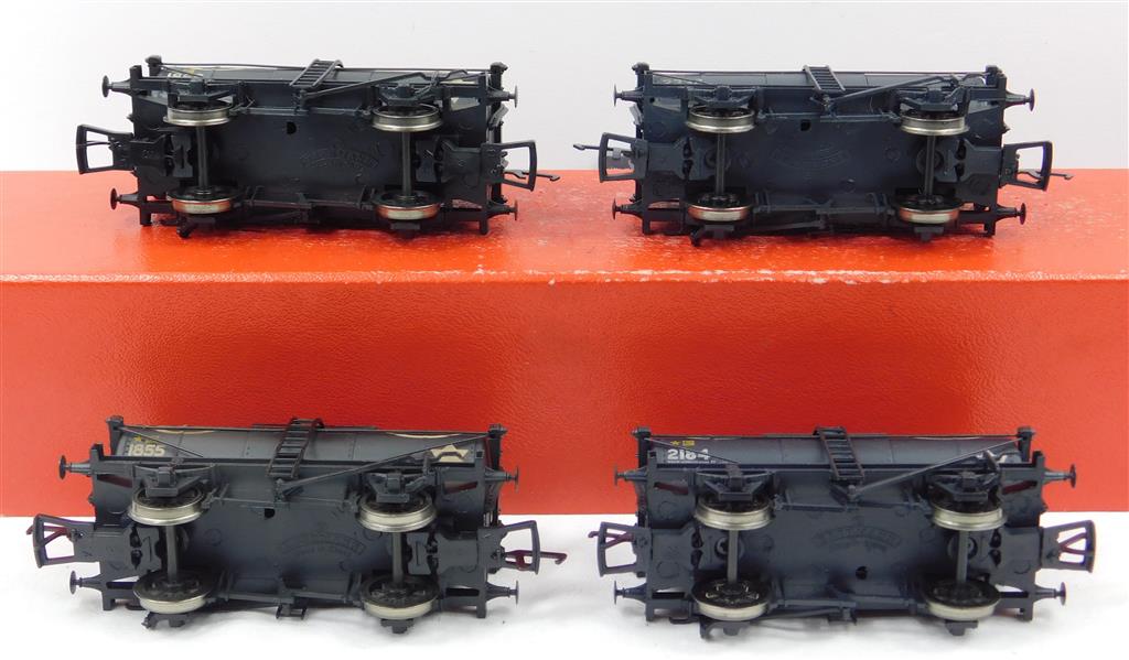4 Bachmann Esso 14 ton tank black wagons number 1855, 1869, 2184 and 2338, in good condition, no original boxes