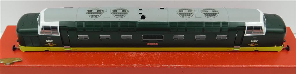 A Bachmann 32-525DS Deltic bodyshell D9007 Pinza, loose light channel one end otherwise in very good condition, supplied in the original box with brass nameplates, no body fixing screws