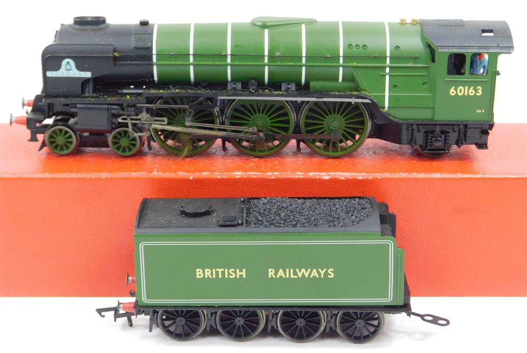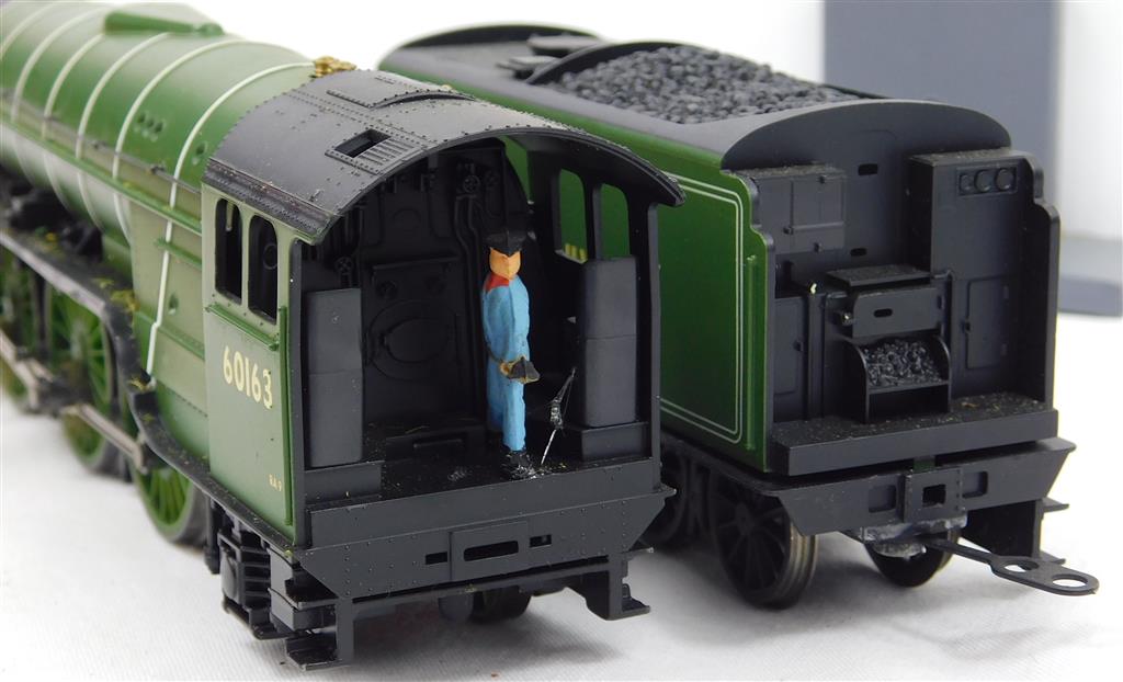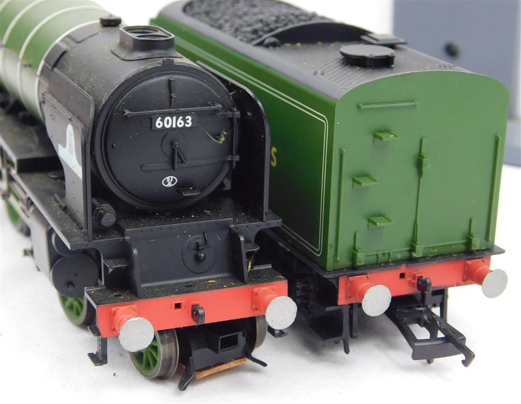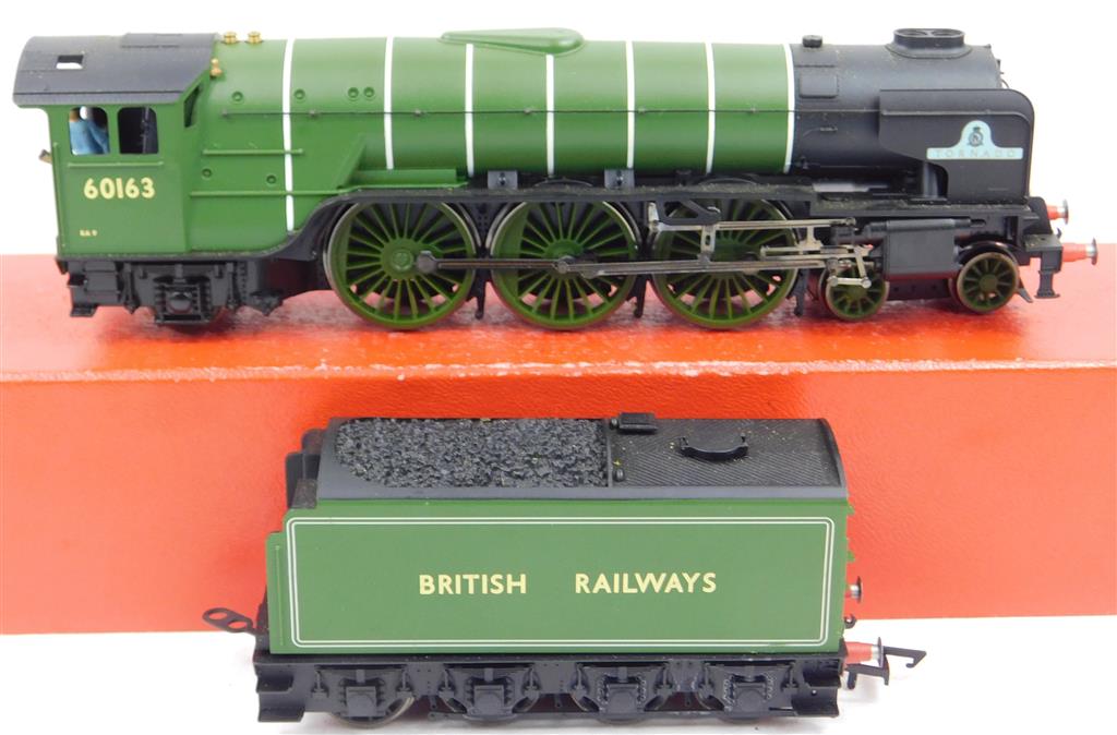 A Hornby Tornado, fluff jammed in con-rod (left hand side, front driving wheel), good runner, missing one tender side frame and glazing, needs a good clean, no original box, sold as a project
