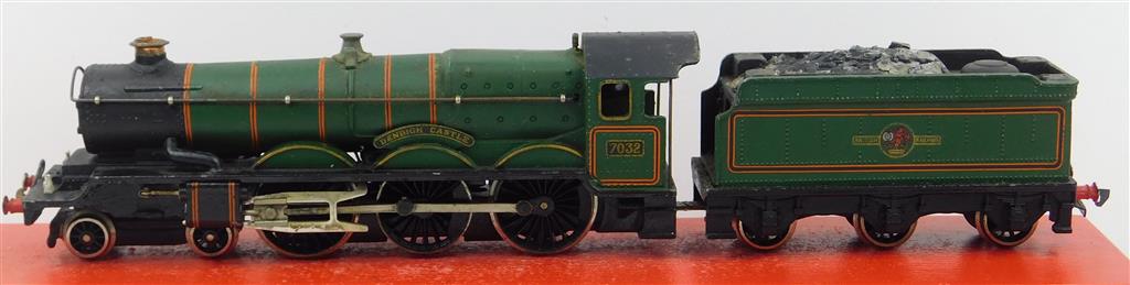 00 Steam Locos: Hornby Dublo 2 rail BR Castle class steam loco Denbigh Castle, good runner, small added details