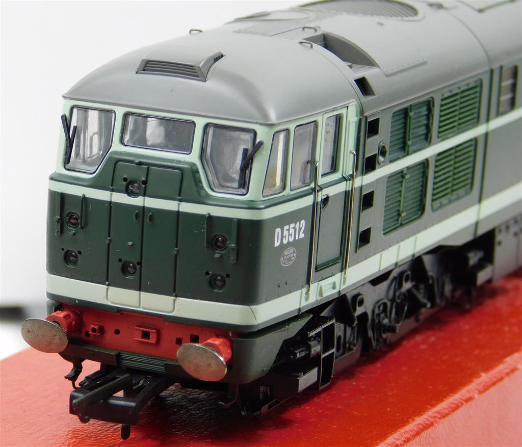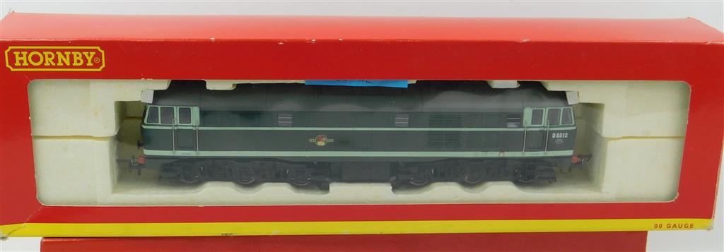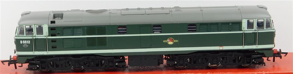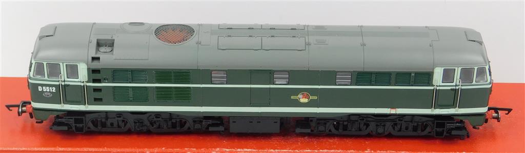 A Hornby BR Brush 2 class 31 diesel loco number D5512, good runner on both DC and DCC with directional head and tail lights but the lights flicker on DC, Uhlenbrock DCC fitted, in good clean condition, supplied in an incomplete original box. I can see no sign of Mazac rot on this model.