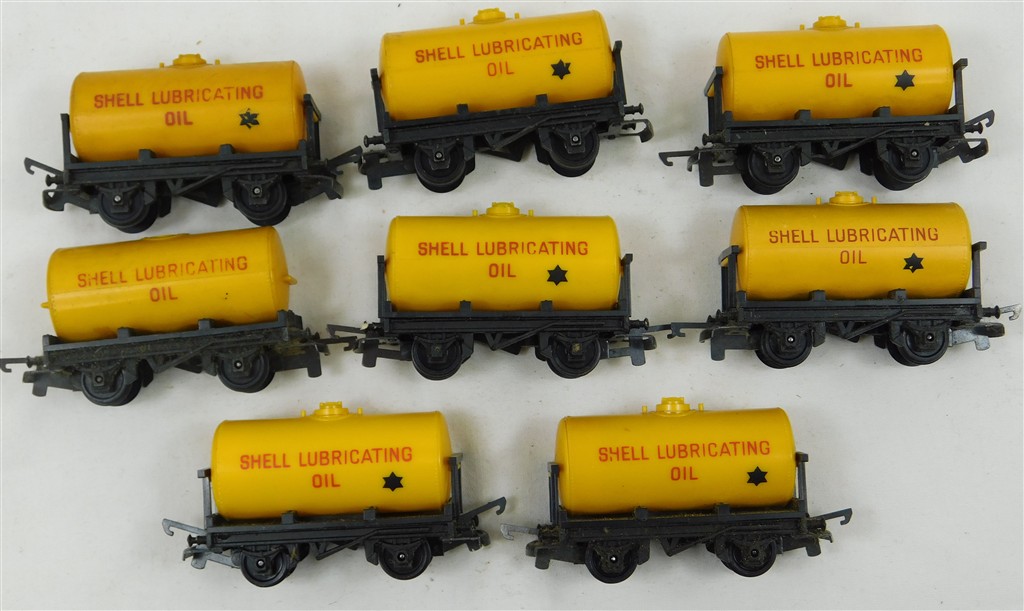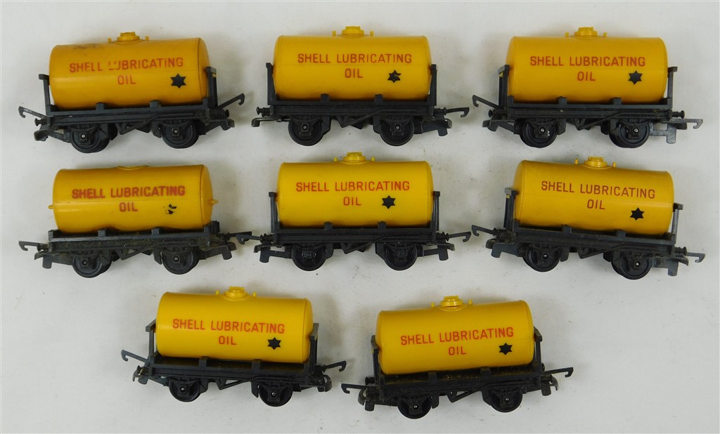 TT Gauge: 8 Tri-ang TT Shell Lubricating Oil Tank Wagons