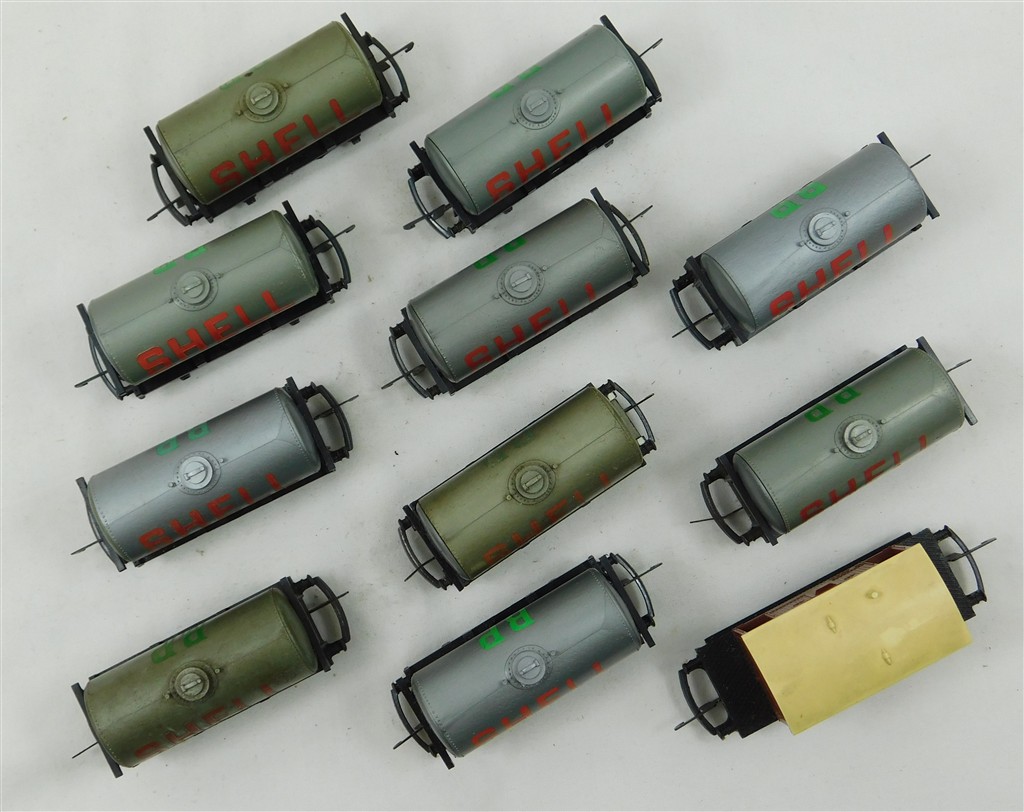 TT Gauge: 10 Tri-ang TT Shell/BP Tank Wagons + Brake Van