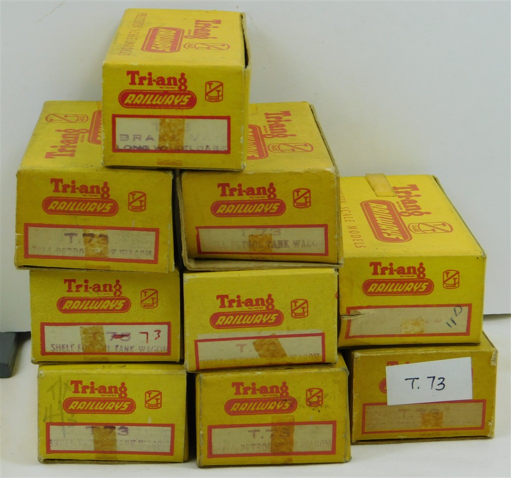 10 Tri-ang TT Shell/BP Tank Wagons + Brake Van will need a clean, condition varies, eight supplied in original boxes