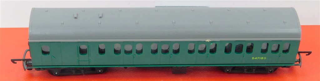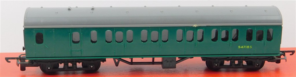 TT Gauge: Tri-ang TT T131 Green Suburban Brake Coach, rounded windows