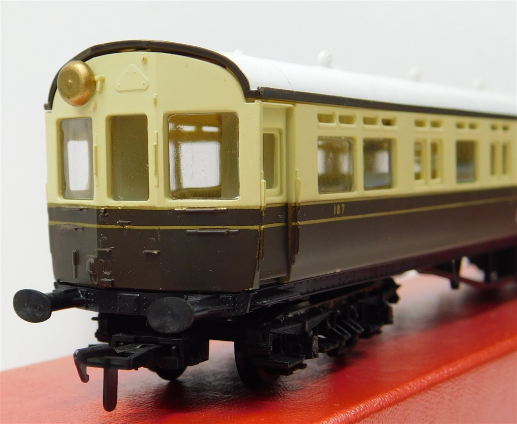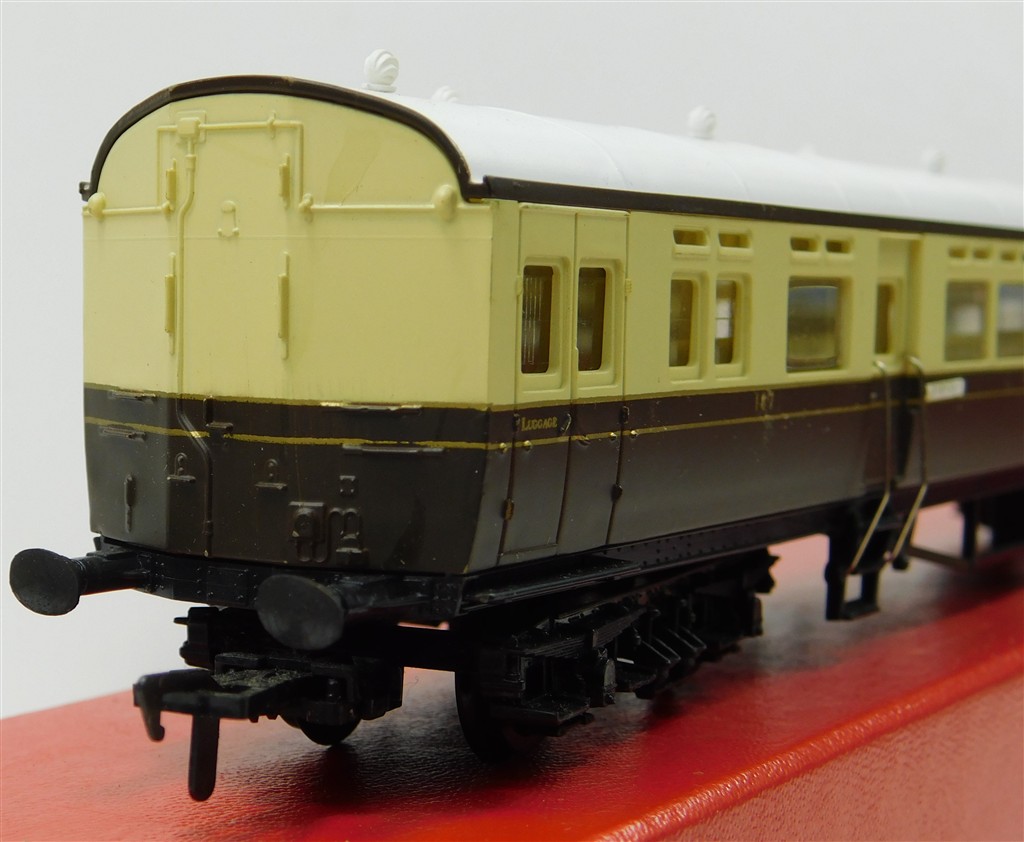 An Airfix chocolate and cream Great Western Autocoach, narrow couplings both ends, in good used condition, supplied in the original box.