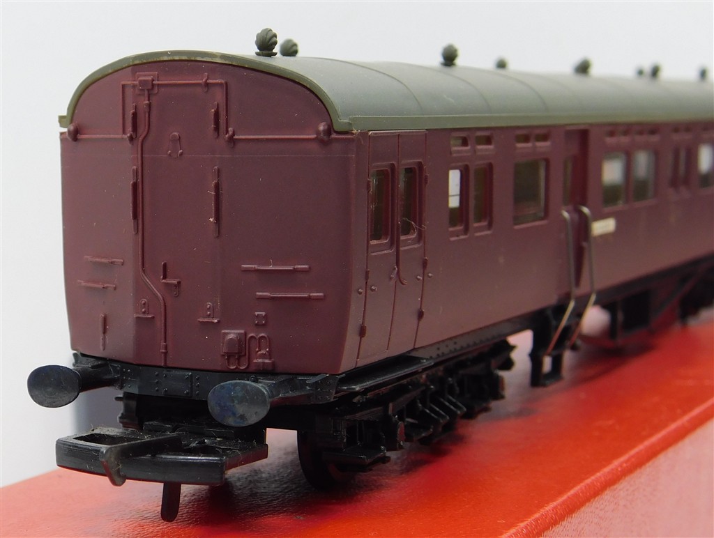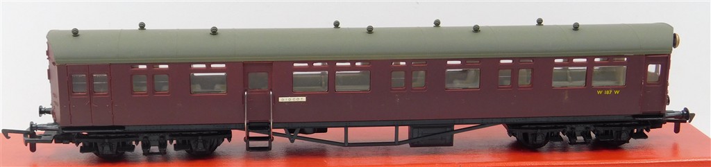 An Airfix BR Maroon Autocoach, narrow coupling at the front, wide at the rear, in good used condition, supplied in the original box.