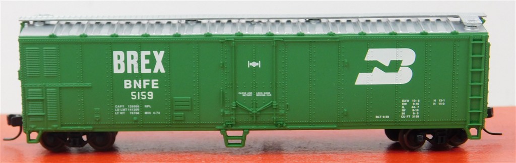 An Atlas N gauge 36533 50 Foot Mechanical Reefer Car - Burlington Northern #5159 in very good condition, supplied in the original box.