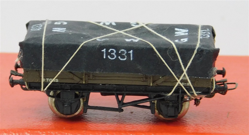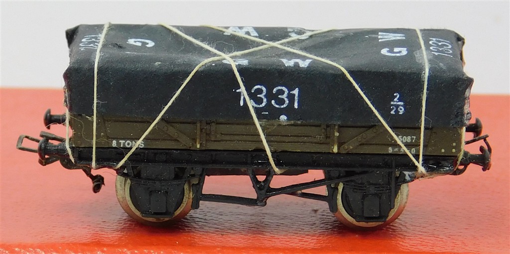 British N gauge: N gauge open wagon with changed couplings and added tarpaulin