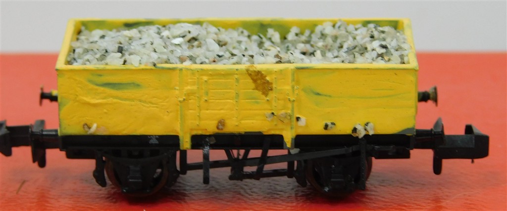 British N gauge: Repainted Graham Farish N gauge yellow open wagon