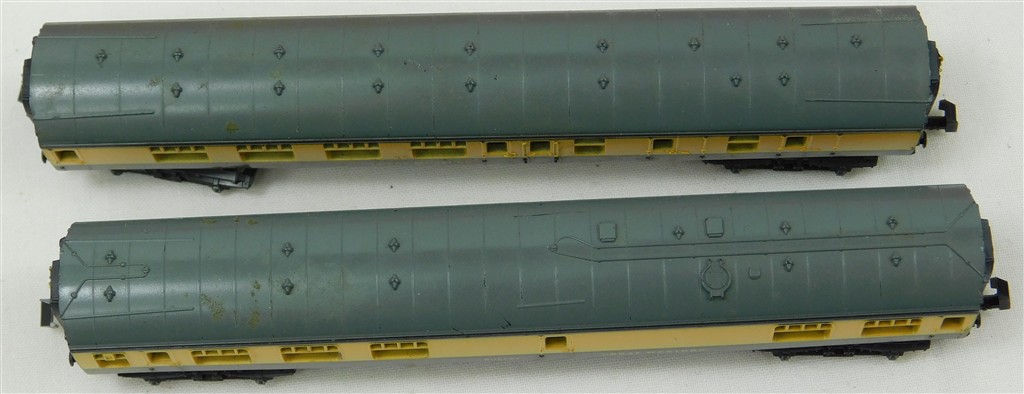 2 Lima N gauge "GWR" Mk1 coaches, underscale length, in fair condition, no original boxes