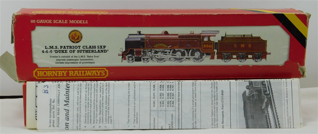 A Hornby R357 tender drive LMS Patriot 4-6-0 steam loco number 5541 Duke of Sutherland, good runner, in good condition, supplied in the tatty original box.