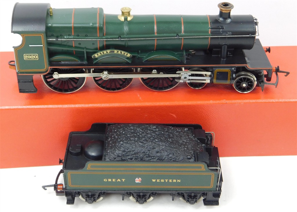 A Hornby R830 tender drive GWR Saint 4-6-0 steam loco number 2920 Saint David, good runner, in good condition, supplied in the tatty original box.