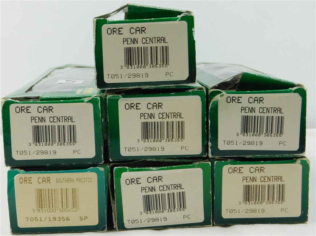 7 Mehano Penn Central weathered hopper cars, one has been fitted with a Dapol type coupling otherwise they all have horn-hook couplings, in good condition, supplied in the original boxes