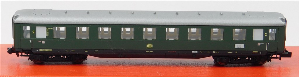 A Fleischmann N gauge German DB Epoch III skirted 2nd class coach, in good used condition, no original box