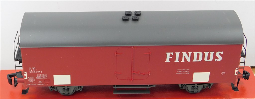 A Rivarossi 0 gauge 7568 Swedish SJ Findus insulated van, in very good condition, supplied in the original box