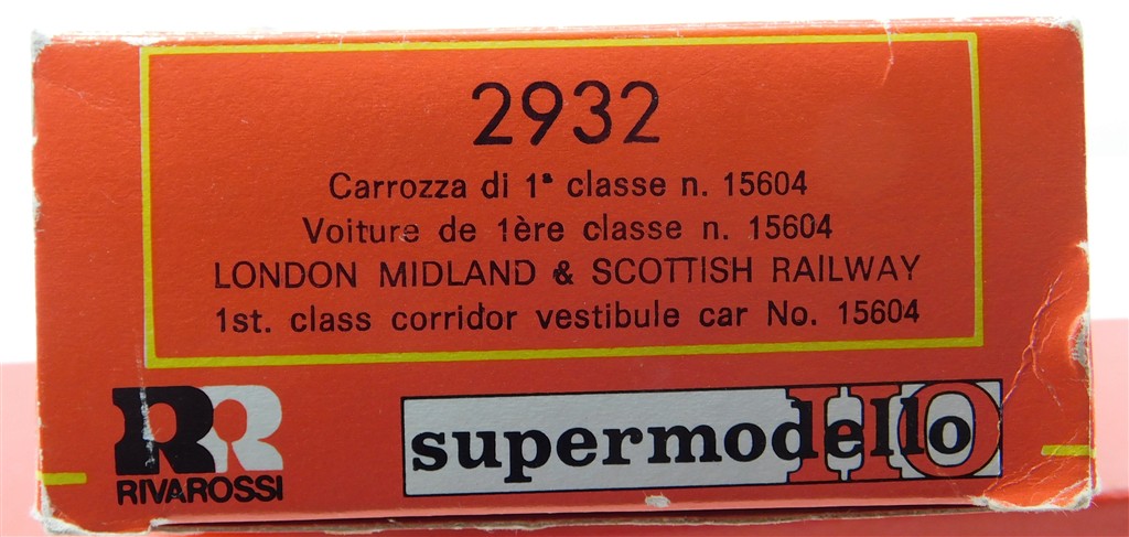 A Rivarossi 2932 H0 scale LMS 1st class coach number 15604, in very good condition and supplied in either the original box or an incorrect box for 2933.