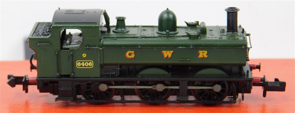 A Graham Farish by Bachmann N gauge GWR 64xx Pannier Tank number 6406, good runner, in good condition, no original box