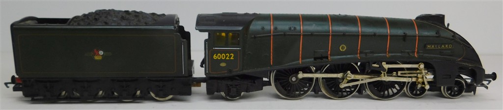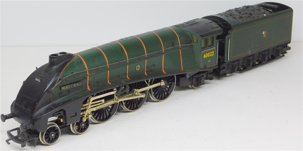 A Hornby tender drive BR 60022 Mallard, reluctant runner, needs a thorough electrical clean and careful lubrication, in fair condition, no original box