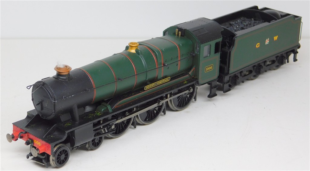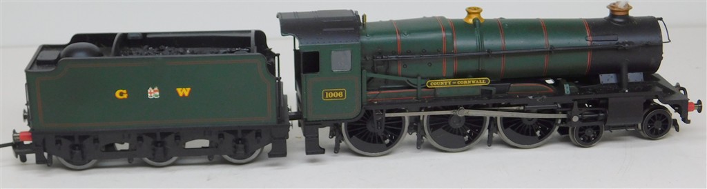 A Hornby loco drive GWR 1006 County of Cornwall, non-runner: chassis seized solid, no sign of life when power applied, added cotton wool in chimney, in good cosmetic condition, no original box, sold as a project.
