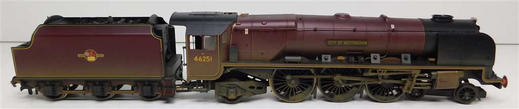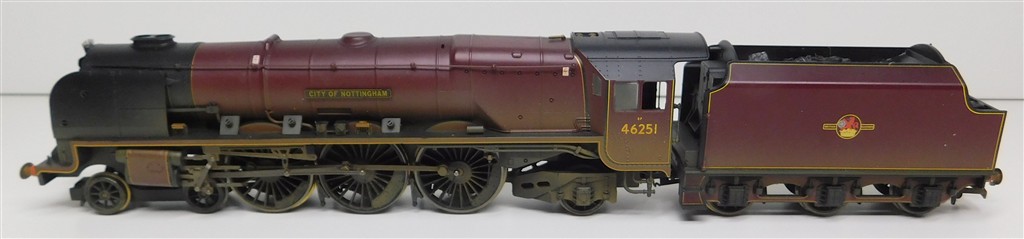 A Hornby loco drive 46251 City of Nottingham, non-runner: motor runs, no drive; suspect split gear, in good cosmetic condition, weathered, no original box, sold as a project.