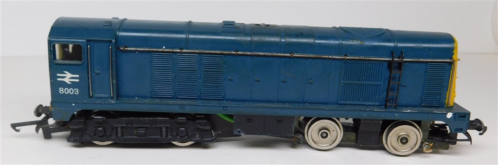A Wrenn BR blue class 20 diesel loco 8003, motor runs, no drive, glued on bogie side frames need attention, changed body fixing screw, in fair cosmetic condition, no original box, sold as a project.
