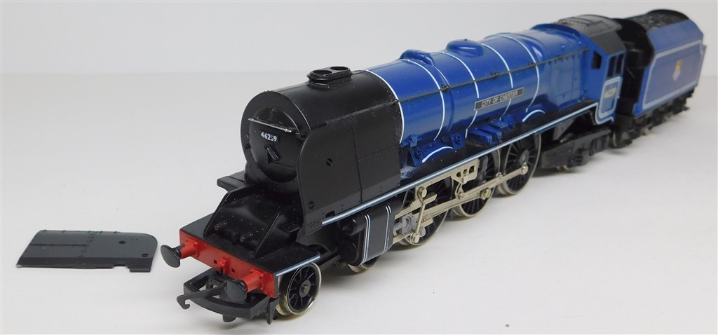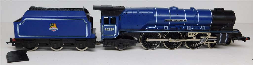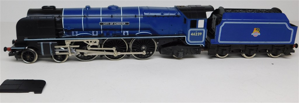 A Hornby tender drive BR ex LMS Duchess 46239 City of Chester, reluctant runner, needs a thorough electrical clean and lubrication, loose smoke deflector one side and missing some handrails otherwise in good cosmetic condition, no original box