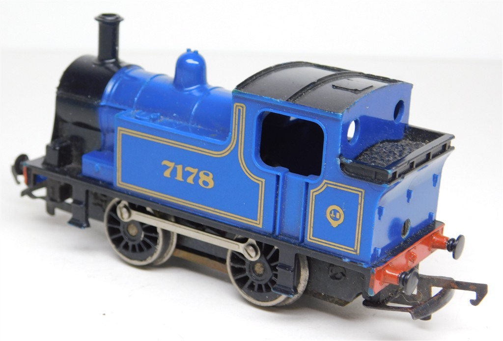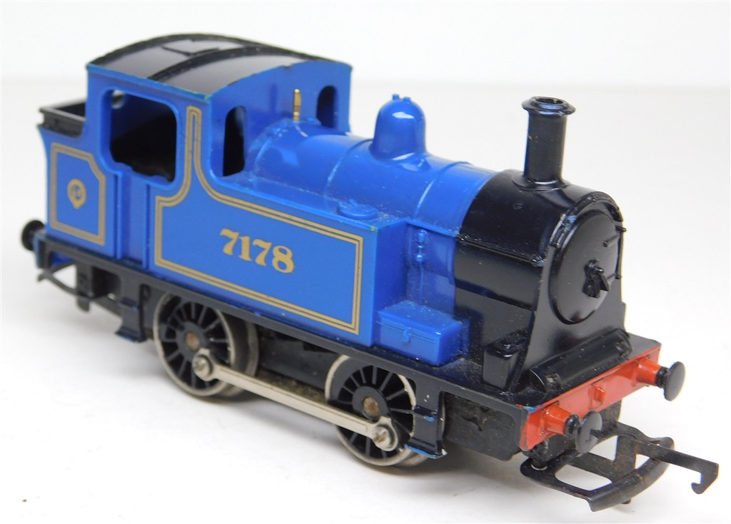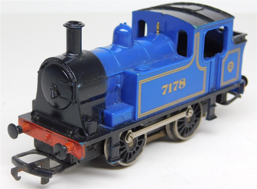 A Hornby early 1970s production S&D style 0-4-0T steam loco number 7178, reluctant runner: needs a thorough electrical clean and careful lubrication plus running-in, no original box, sold as a project. Please note this loco needs a controller capable of delivering at least 600mA to run well, and doesn't like new Hornby or Peco points.