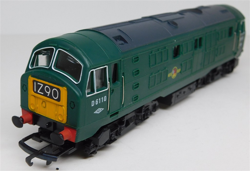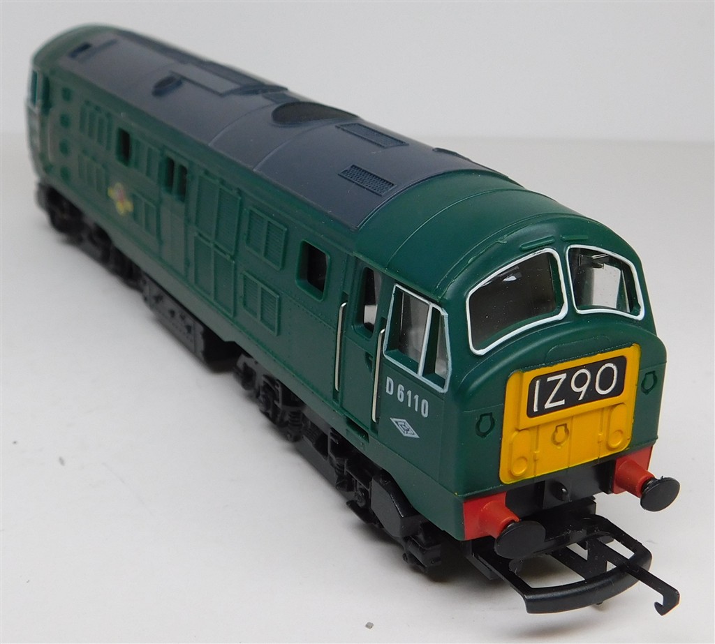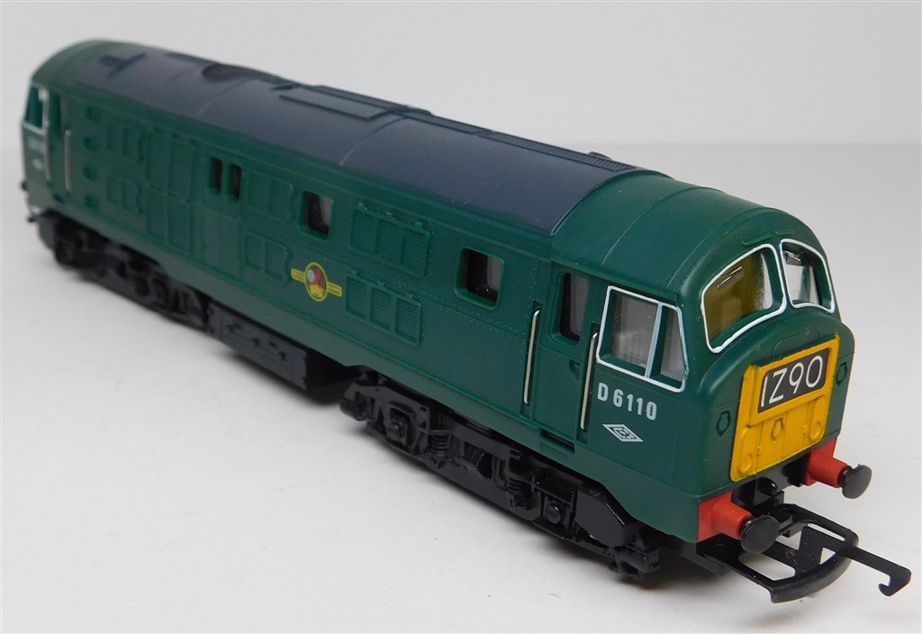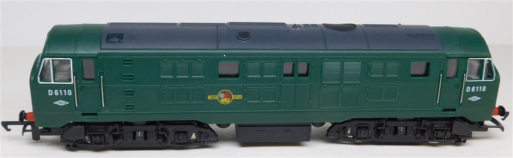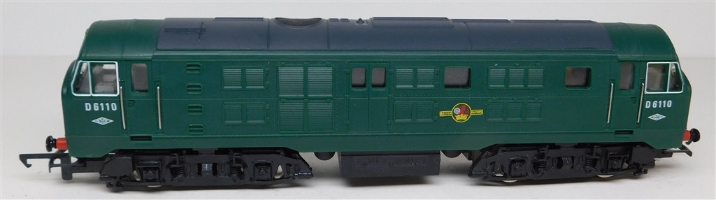 A Hornby ringfield motor green class 29 D6110, no sign of life when power applied, not investigated further but the commutator is caked in black sludge, in good cosmetic condition, no original box, sold as a project.