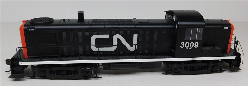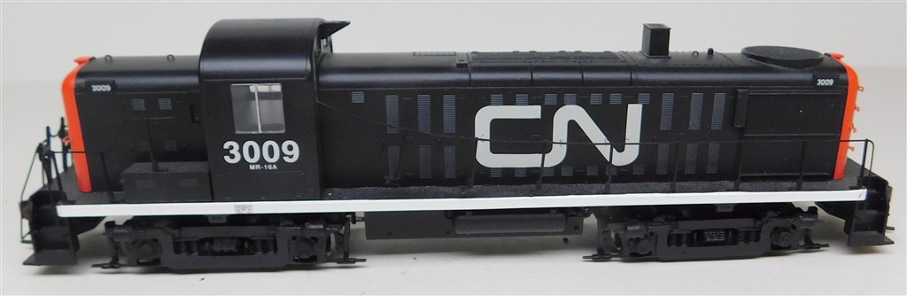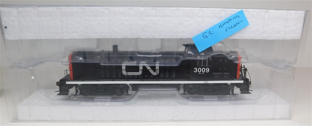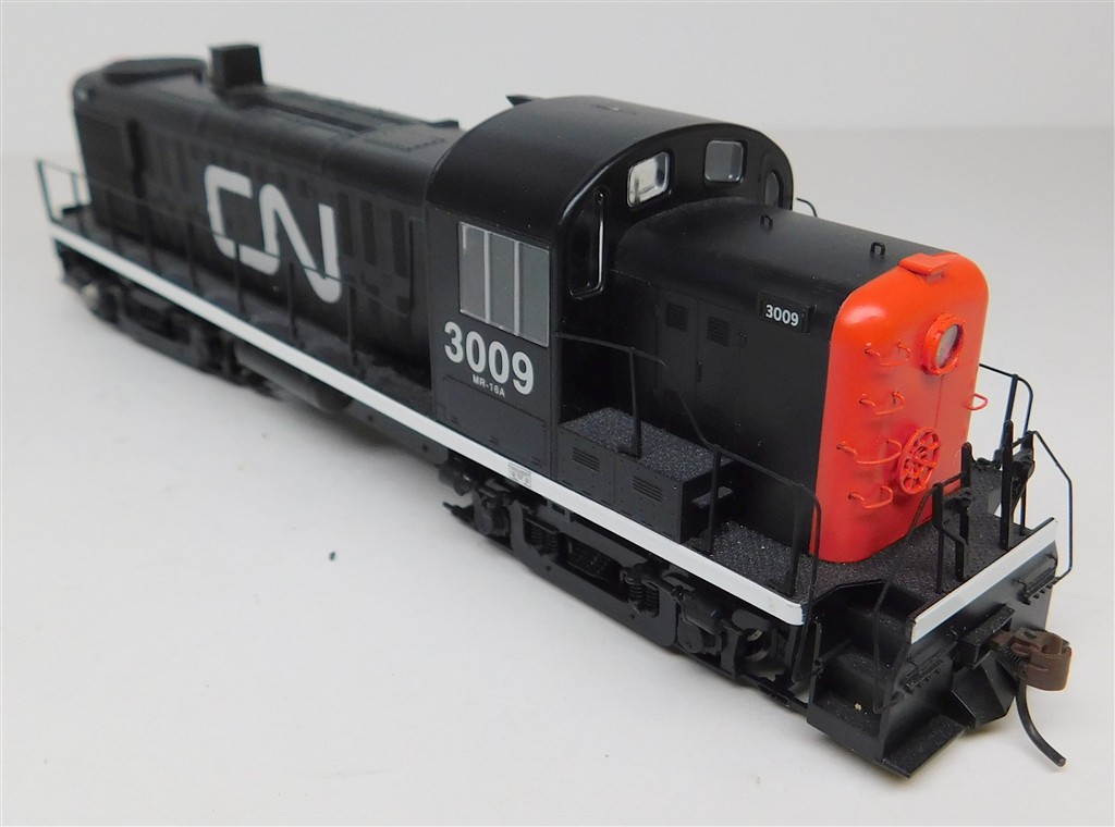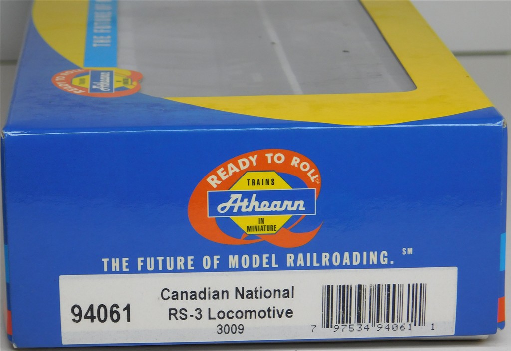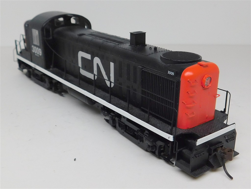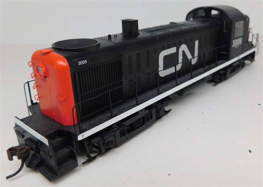 An Athearn Canadian National Alco RS3 diesel loco 3009, good runner with a rhythmic clunk so suspect a split gear needs replacement, needs a clean and handrails need careful refitting otherwise in good condition, supplied in the original box with some instructions, Kadee type couplings