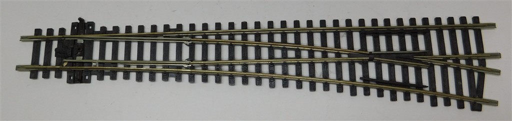 A Peco Large Radius Right Hand Insulfrog Universal Point, Code 100, older version with greater clearance on the frog and check rails, in good used condition, no original packet